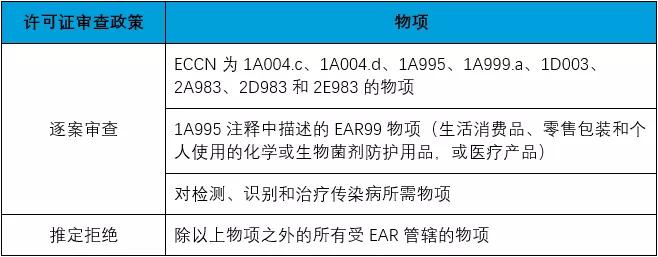 2. 對于其他中國大陸實(shí)體和個(gè)人,出口、再出口、轉(zhuǎn)讓(境內(nèi))受EAR 管轄的全部物項(xiàng)均采取“推定拒絕”的審查政策。